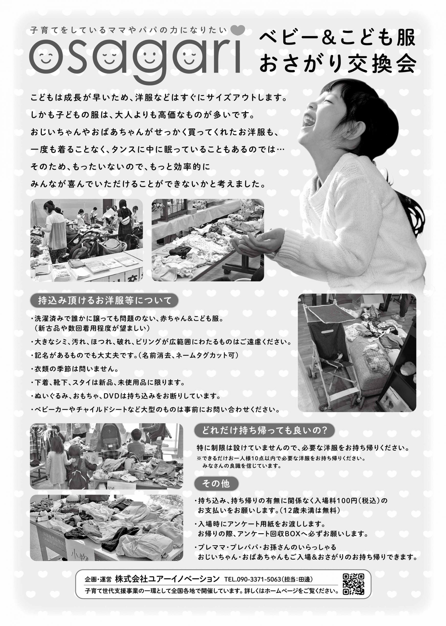 おさがり交換会は子育て世代支援事業として、2015年倉敷市からスタートして今では県内以外にも北海道や四国など全国各地で約70回開催。